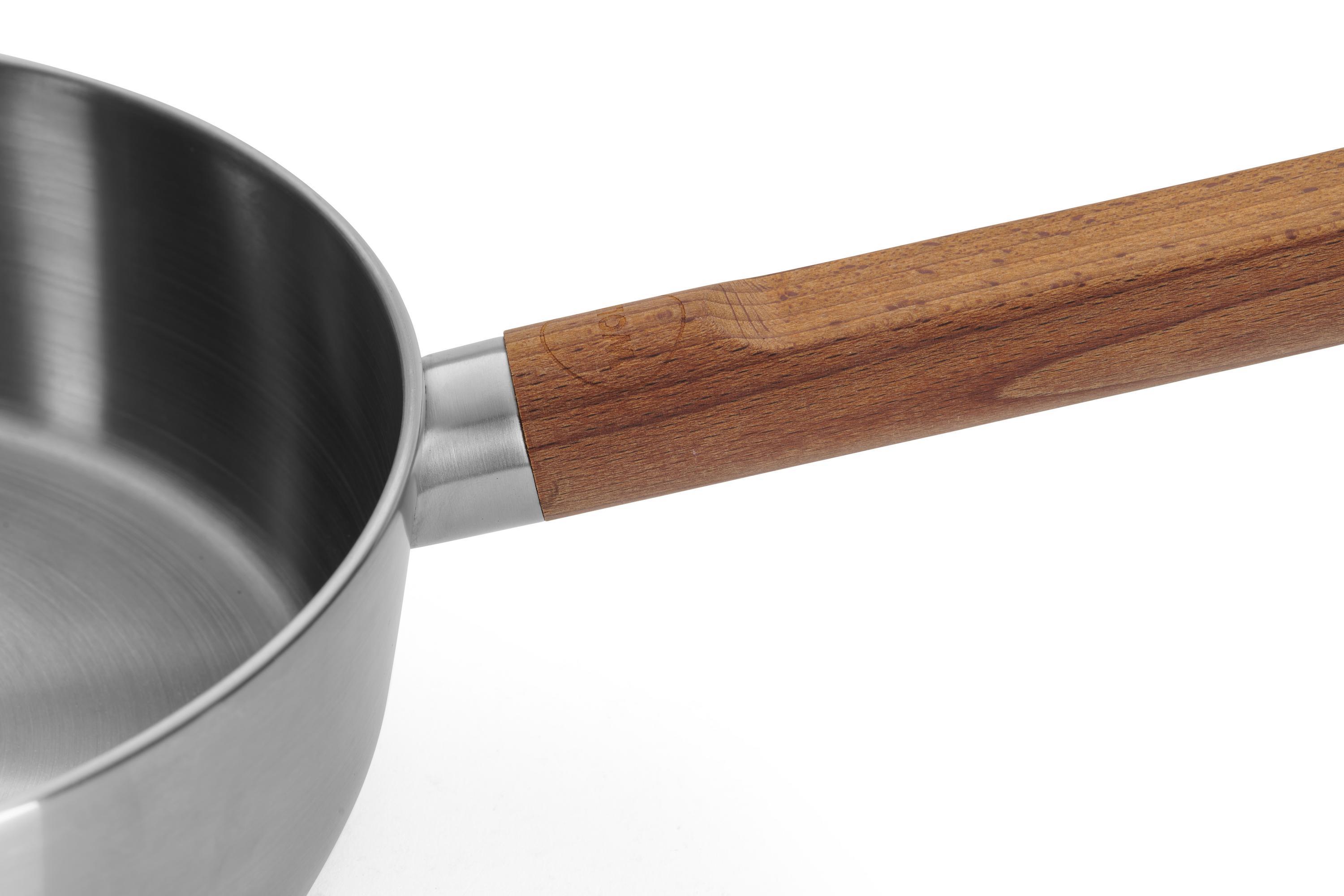 Durch die hohe Randhöhe von 70 mm kannst Du in dieser Pfanne nicht nur braten, sondern auch Saucen zubereiten oder größere Mengen an Zutaten komfortabel wenden. Dank der ergonomischen Holzgriff-Konstruktion bleibt die Pfanne auch bei längerem Kochen gut in der Handhabung.